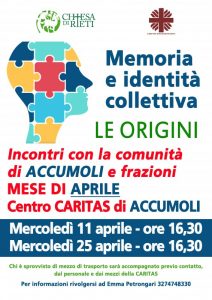 MEMORIA E IDENTITÀ COLLETTIVA – EVENTI CARITAS DEL MESE DI APRILE 2018