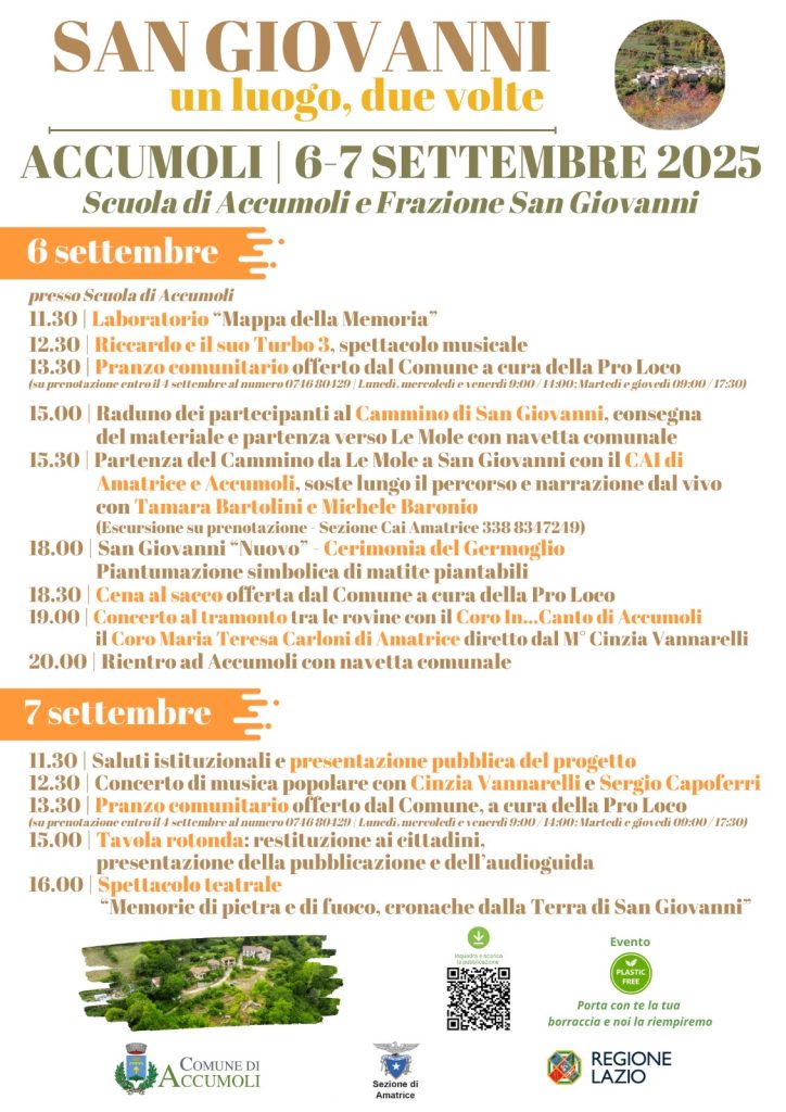 Il 6 è 7 settembre 2025 Accumoli dedica due giornate speciali alla sua frazione di San Giovanni, un luogo che porta in sé la forza della memoria e il desiderio di rinascita.