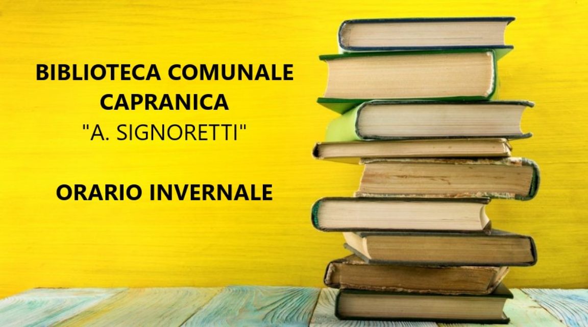 ORARIO INVERNALE BIBLIOTECA COMUNALE “A. SIGNORETTI”