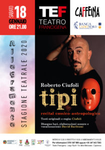 Oggi, sabato 18 gennaio ore 21.00, imperdibile serata al TEATRO FRANCIGENA con lo spettacolo di ROBERTO CIUFOLI “Tipi” – recital comico antropologico.