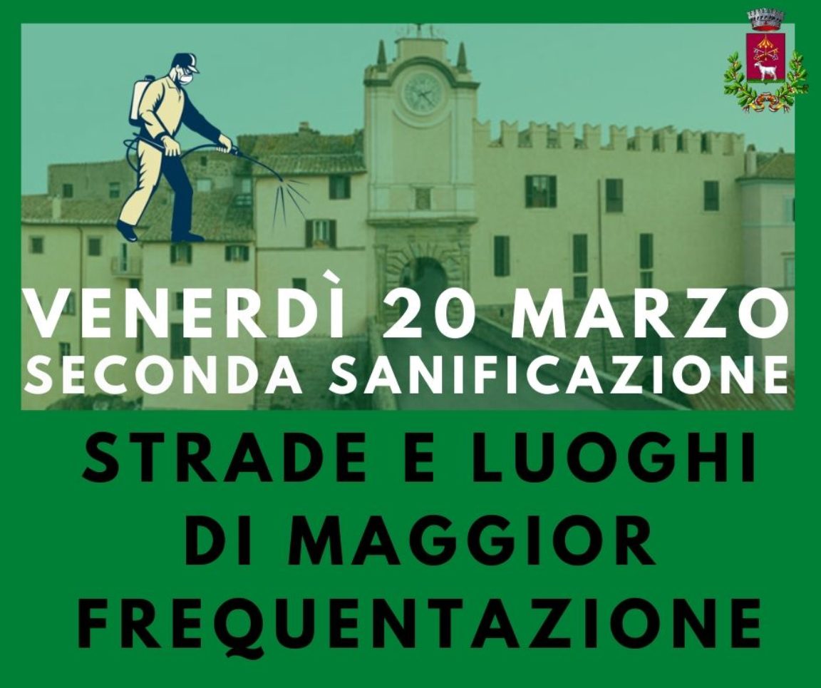 Si informa la cittadinanza che oggi una ditta specializzata a partire dalle ore 14:30 svolgerà la seconda sanificazione delle strade e degli spazi pubblici maggiormente frequentati con prodotto disinfettante.