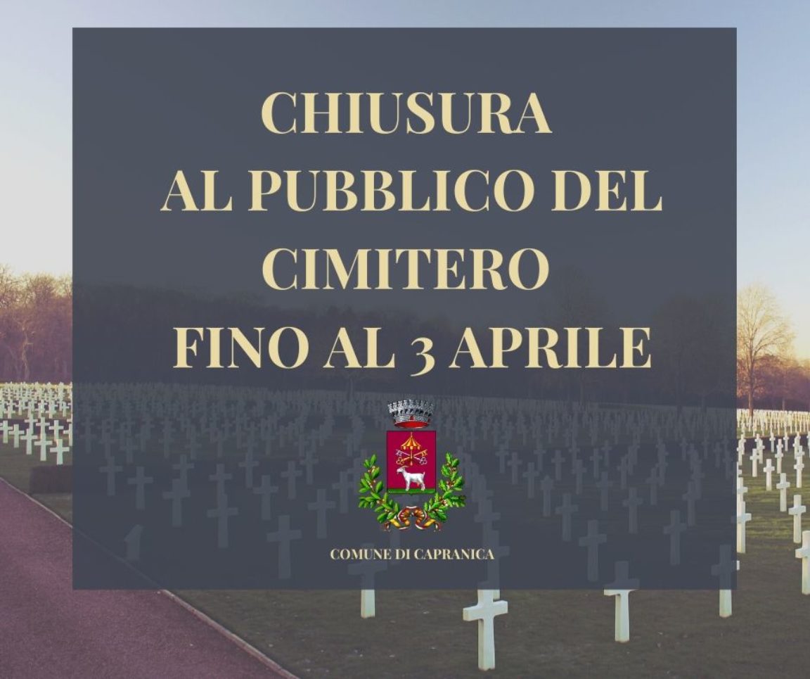 Al fine di evitare assembramenti a seguito dell’emergenza Covid-19 si dispone la chiusura al pubblico del cimitero fino al 3 aprile.