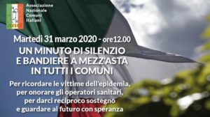DOMANI 31 MARZO ORE 12:00: UN MINUTO DI SILENZIO E BANDIERE A MEZZ’ASTA IN TUTTI I COMUNI