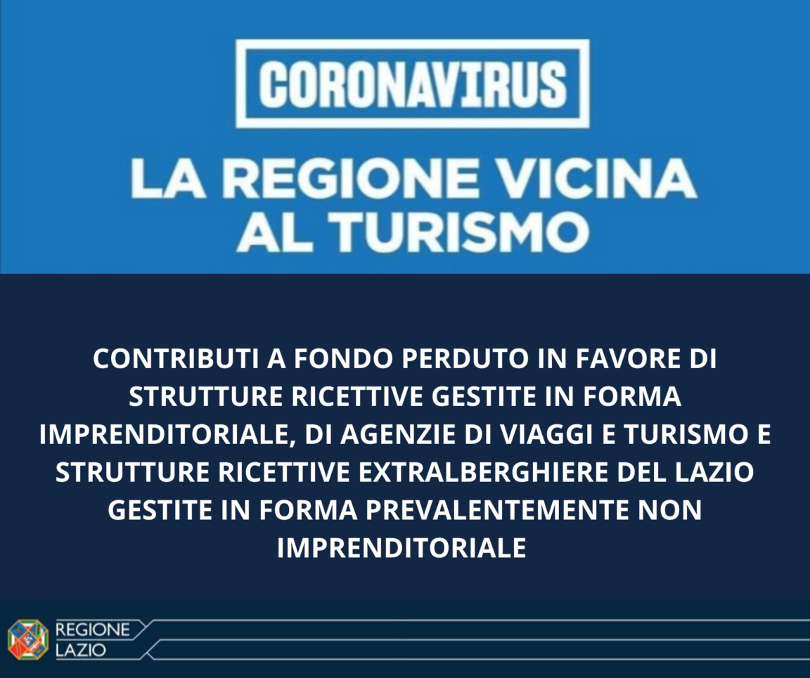 La Regione Lazio ha stanziato risorse per la concessione di contributi a fondo perduto, per far fronte ai danni causati dall’emergenza COVID-19, a favore di operatori del settore turistico.