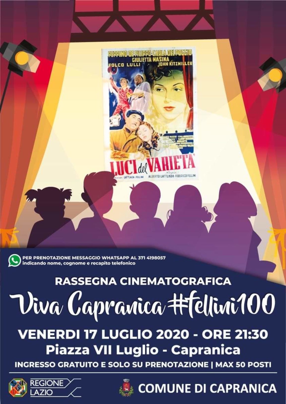 Domani venerdì 17 luglio inizia la Rassegna Cinematografica VivaCapranica #fellini100 con la proiezione del film #lucidelvarietà girato a Capranica.