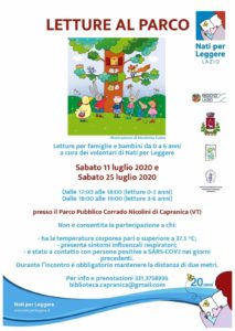 DOMANI SABATO 25 LUGLIO: DOPPIO APPUNTAMENTO CON LA LETTURA AL PARCO PUBBLICO “C. NICOLINI”