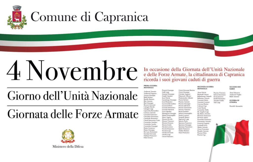 4 NOVEMBRE 2020 – CELEBRAZIONE FESTA UNITÀ NAZIONALE, FORZE ARMATE E COMMEMORAZIONE CADUTI IN GUERRA 4 Novembre 2020
