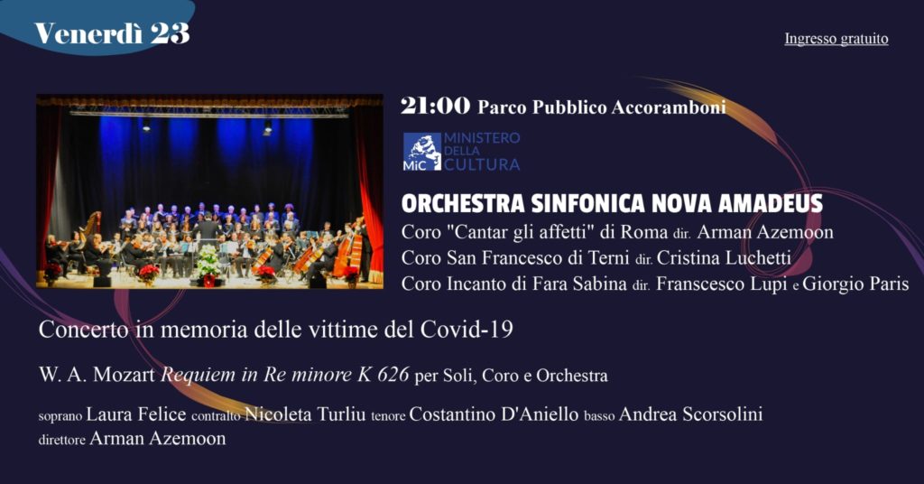 QUESTA SERA AL PARCO ACCORAMBONI ORE 21:00 : ORCHESTRA SINFONICA NOVA AMADEUS – CONCERTO IN MEMORIA DELLE VITTIME DEL COVID-19