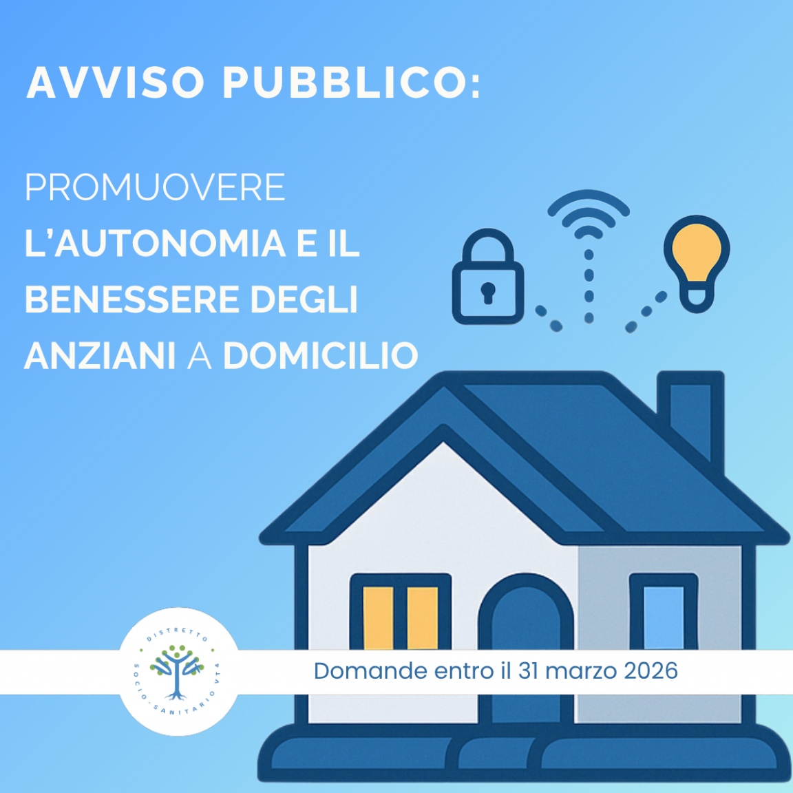 Avviso Pubblico per la selezione in via sperimentale di n. 100 anziani in condizione di non autosufficienza per la costruzione di percorsi innovati di assistenza domiciliare e di adeguamento domotico del domicilio
