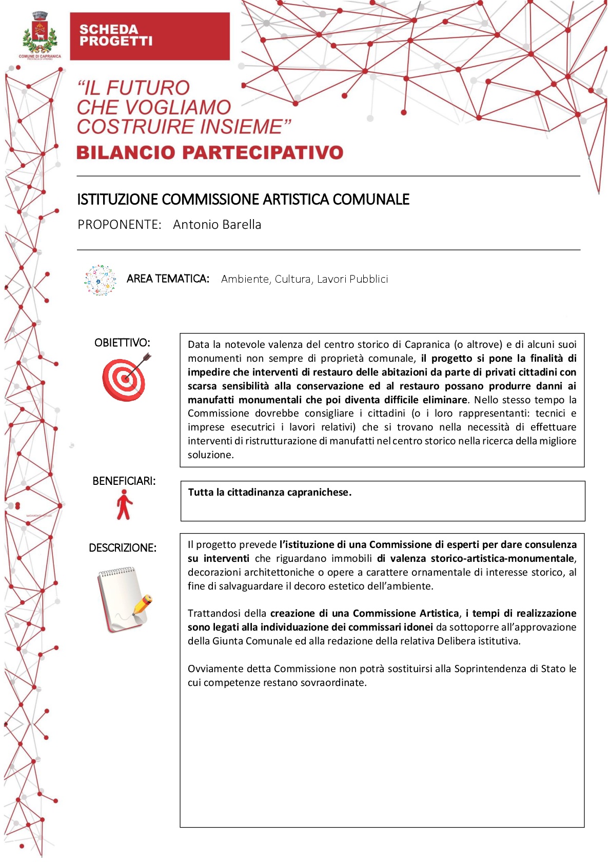 Commissione artistica SCARICA IL PDF DEL PROGETTO 📎 AllegatiIstrituzione commissione artistica comunale - Antonio Barella