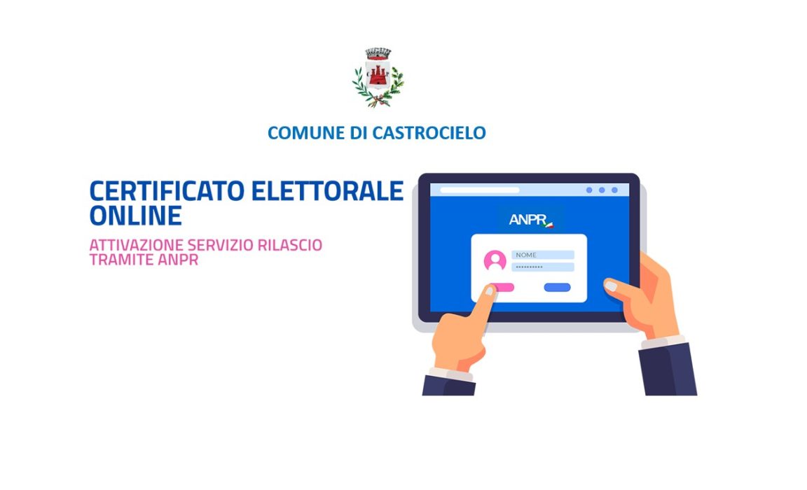 L’Ufficio Elettorale comunica che è possibile richiedere ed ottenere il certificato elettorale tramite l’apposito link “CERTIFICATI” presente nella homepage del sito web istituzionale del Comune di Castrocielo tramite il collegamento all’ANPR (raggiungibile all’indirizzo https://www.anagrafenazionale.interno.it).