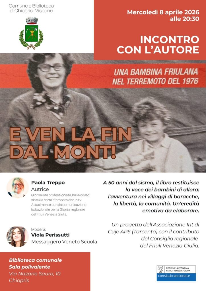 Incontro con l’autore “E ven le fin dal mont ” Paola Treppo – Mercoledì 8 aprile 2026 alle 20.30 31 Marzo 2026