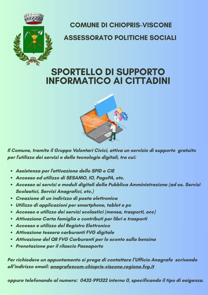 Attivazione sportello di supporto informatico ai cittadini 7 Aprile 2026 📎 AllegatiLocandina sportello di supporto informatico 2026