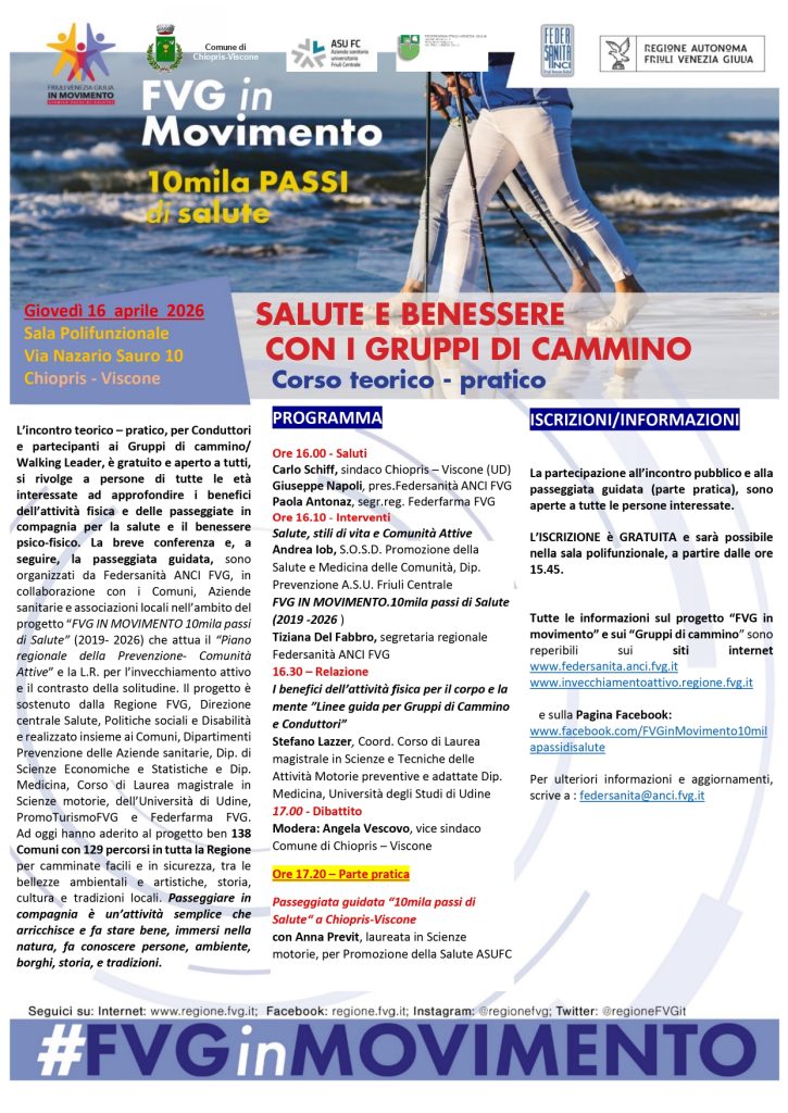 Incontro su “Salute e benessere con i Gruppi di Cammino” Giovedì 16 Aprile 2026 ore 16.00 7 Aprile 2026