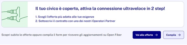 Collegandosi a questo link http://openfiber.it/verifica-copertura/, i cittadini potranno verificare se la rete è disponibile presso le loro abitazioni e quali sono gli operatori a cui è possibile rivolgersi per l’attivazione, confrontando quindi già costi, promozioni e offerte disponibili.