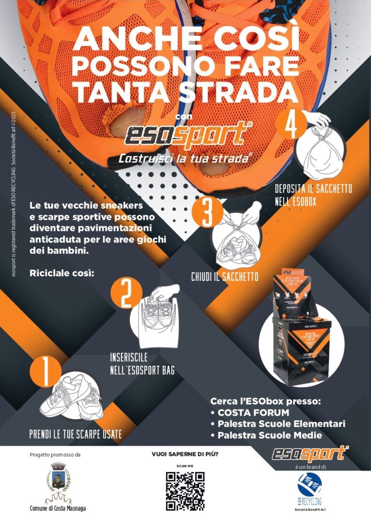 Il Comune di Costa Masnaga ha aderito al progetto per la raccolta di scarpe sportive a fine vita.
