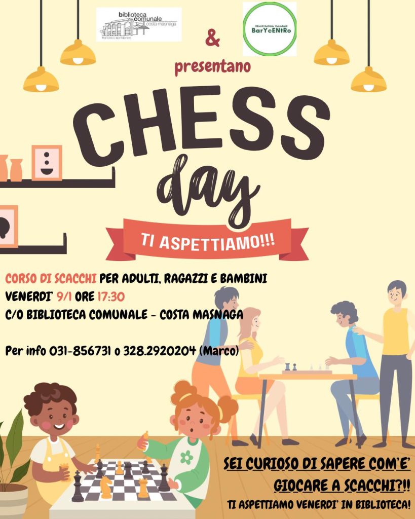 La Biblioteca Comunale di Costa Masnaga e BarYcentro ti invitano a scoprire il mondo degli scacchi!