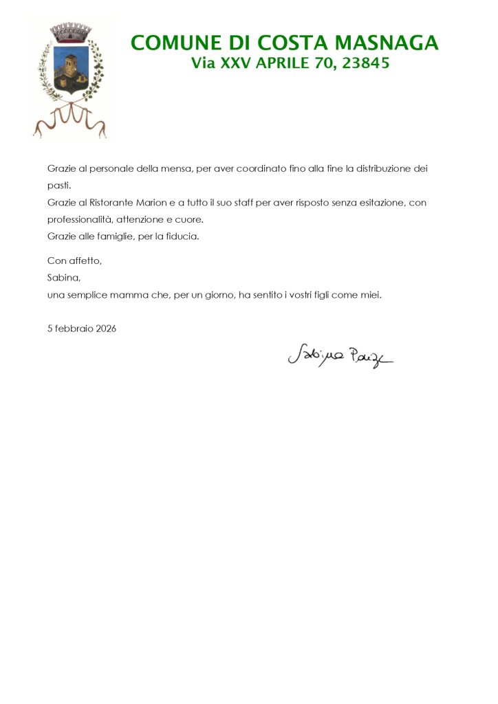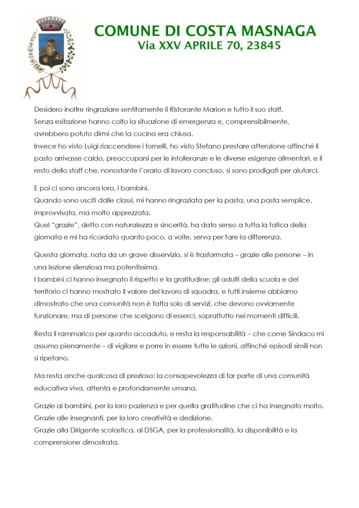 SI TRASMETTE UN PENSIERO PERSONALE DA PARTE DEL SINDACO