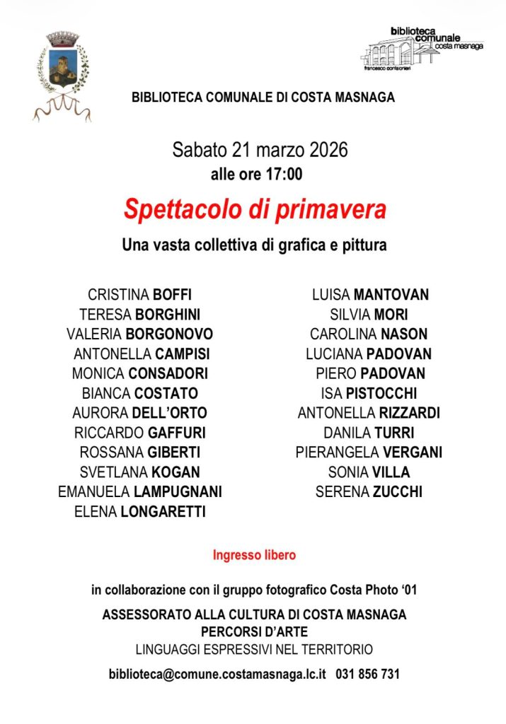 #SpettacoloDiPrimavera #Arte #Grafica #Pittura #CostaMasnaga #BibliotecaComunale #Cultura #PercorsiDArte #IngressoLibero