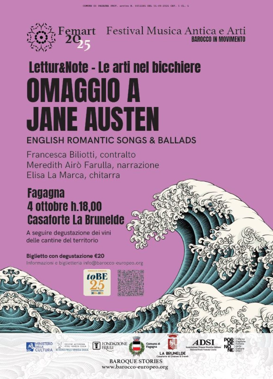 Un’esperienza unica che intreccia musica barocca, letteratura e degustazione dei vini del territorio, ospitata in suggestive dimore storiche del Friuli Venezia Giulia. L’alternanza tra letture tratte da grandi autori italiani e internazionali ed esecuzioni musicali coerenti al periodo storico offre al pubblico un percorso artistico e culturale immersivo, arricchito dalla valorizzazione dell’enogastronomia regionale.