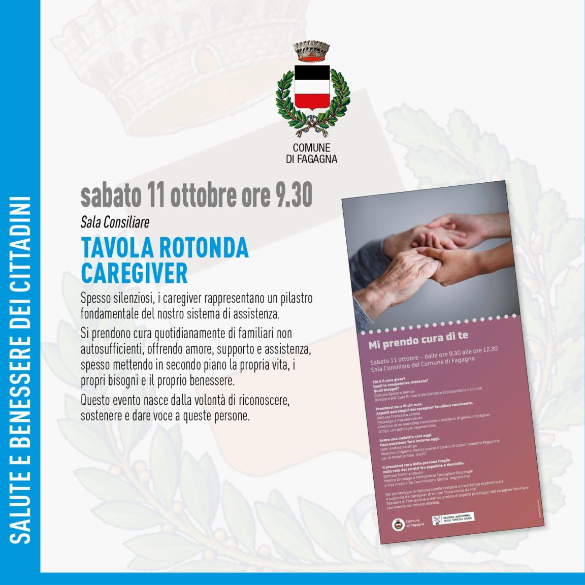 Appuntamento dedicato al tema Caregiver, sabato 11 ottobre 2025 dalle ore 09.30 in sala Consiliare del Municipio
