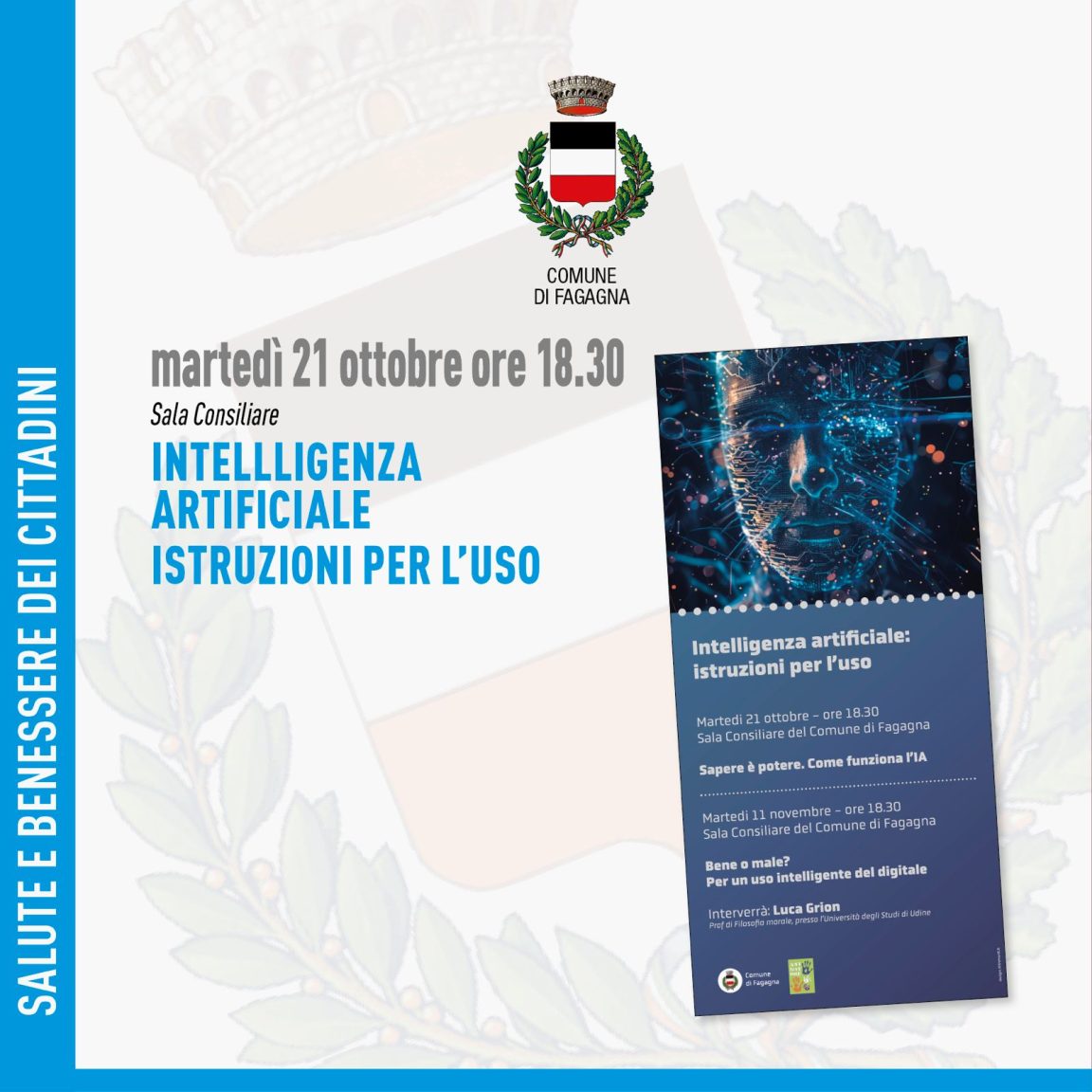 Martedì 21 ottobre alle ore 18.30 in Sala Consiliare, Luca Grion, professore di filosofia morale presso l’Università di Udine, propone la conferenza “Intelligenza Artificale: istruzioni per l’uso”.