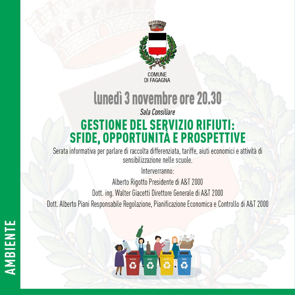 La serata ha lo scopo di informare la cittadinanza sulla gestione del Servizio Rifiuti, contemplando sfide, opportunità e prospettive.