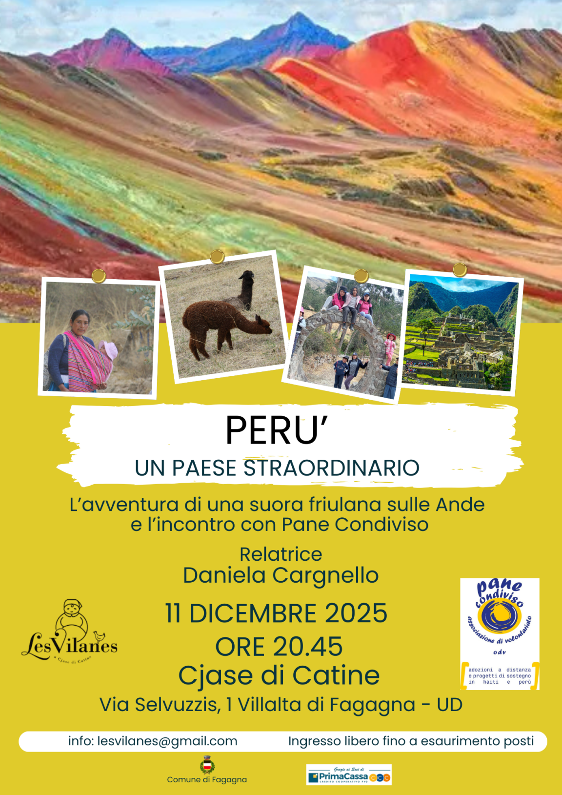 Appuntamento organizzato dall’Associazione Les Vilanes presso Cjase di Catine, giovedì 11 dicembre 2025 alle ore 20.45: “Perù, un paese straordinario e l’incontro con il pane condiviso”.