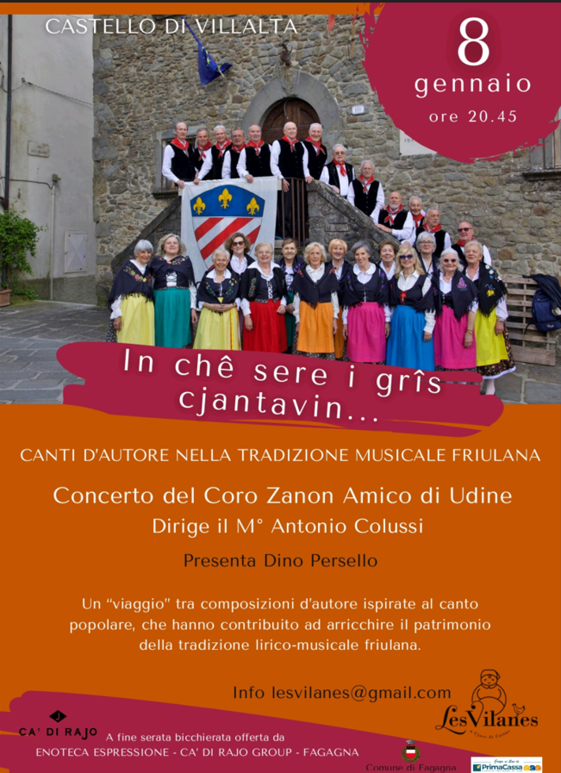 L’associazione Les Vilanes invita al Concerto “In chê sere i grîs cjantavin” presso il Castello di Villalta giovedì 8 gennaio alle ore 20.45
