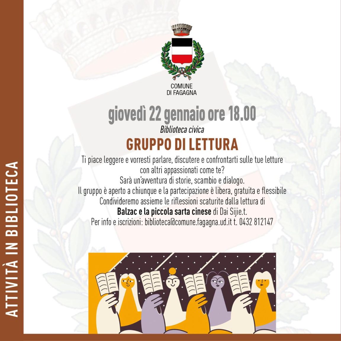 Per info e prenotazioni: biblioteca@comune.fagagna.ud.it