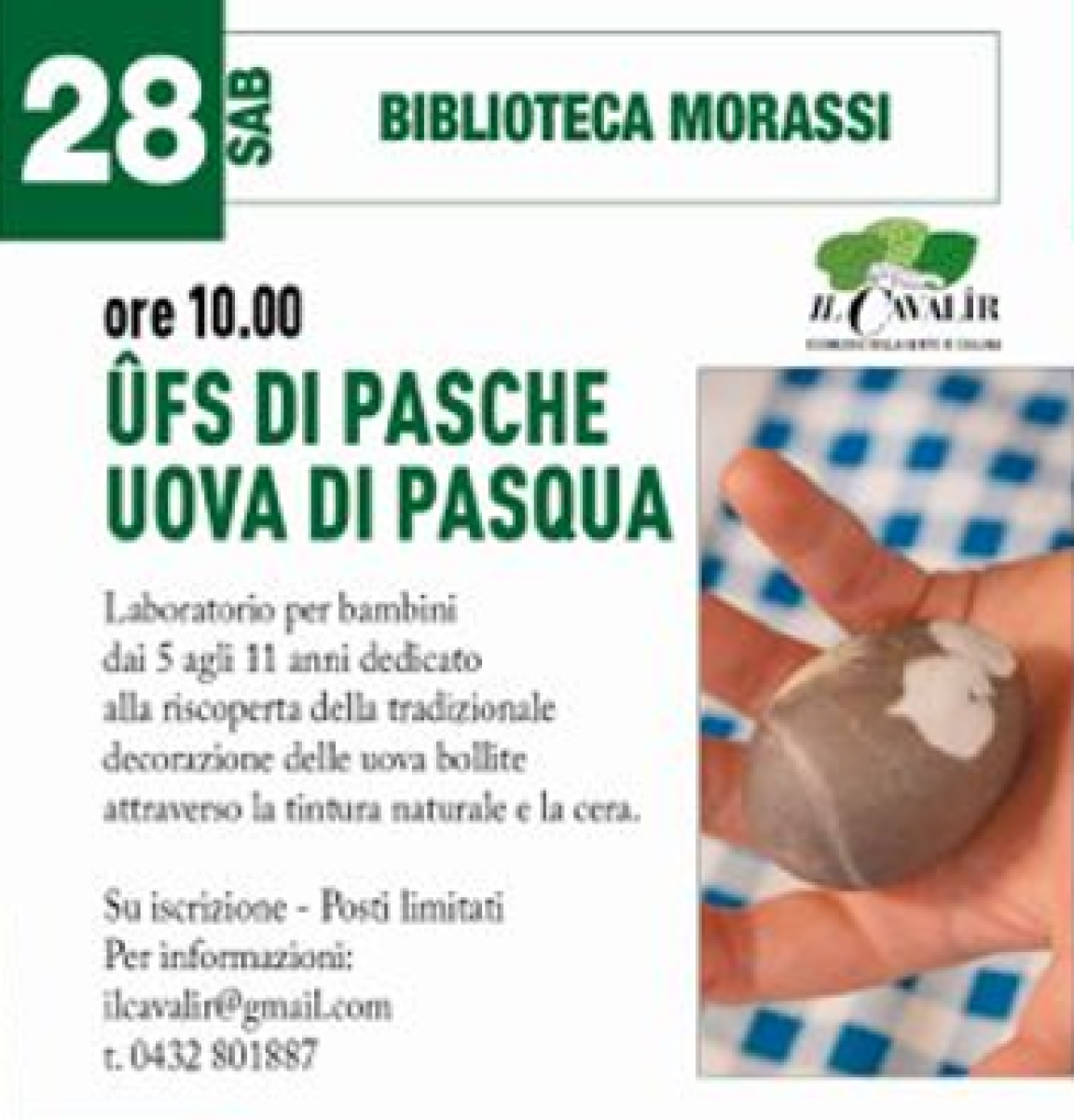 Biblioteca Morassi, Sabato 28 marzo dalle ore 10 a cura di: Museo Cjase Cocel e Ecomuseo il Cavalîr
