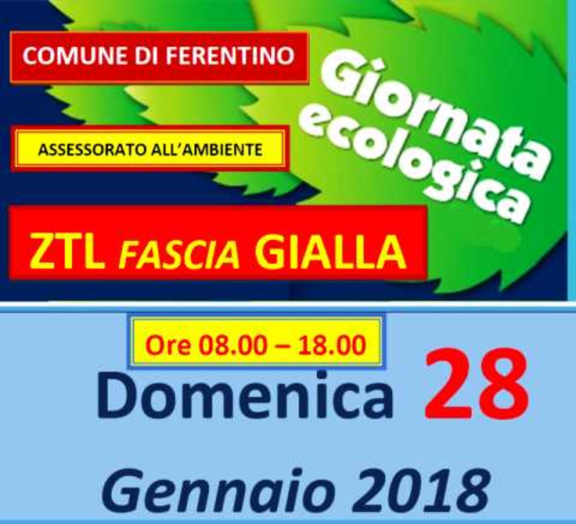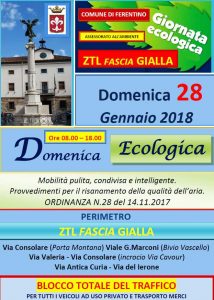 DOMENICA ECOLOGICA 28 GENNAIO 2018 – ZTL FASCIA GIALLA – ORE 8.00-18.00