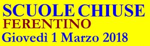 ORDINANZA CHIUSURA SCUOLE GIOVEDI’ 1 MARZO 2018 28 Febbraio 2018 📎 AllegatiCHIUSURA SCUOLE Ferentino 01 marzo 2018