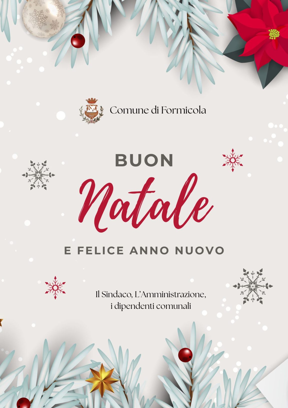 Il Sindaco, l’Amministrazione e i dipendenti comunali augurano ai cittadini un buon Natale e un felice anno nuovo.