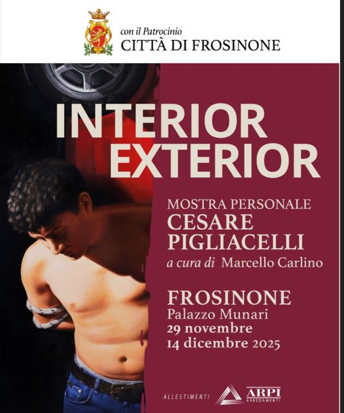 La Città di Frosinone è lieta di presentare INTERIOR/EXTERIOR, mostra personale dell’artista Cesare Pigliacelli, a cura di Marcello Carlino. Dopo Roma, Anagni e Pesaro, la mostra sarà inaugurata nella sede comunale di Palazzo Munari sabato 29 novembre alle ore 17 e sarà visitabile fino al 14 dicembre 2025.