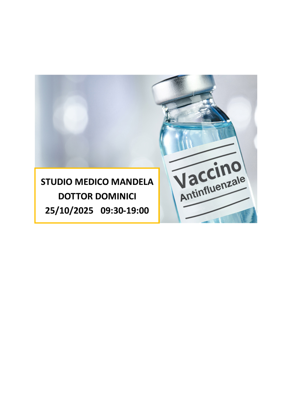 Si informa che presso lo studio del Dottor Dominici verranno somministrati i vaccini antinfluenzali ai pazienti eleggibili, ovvero: