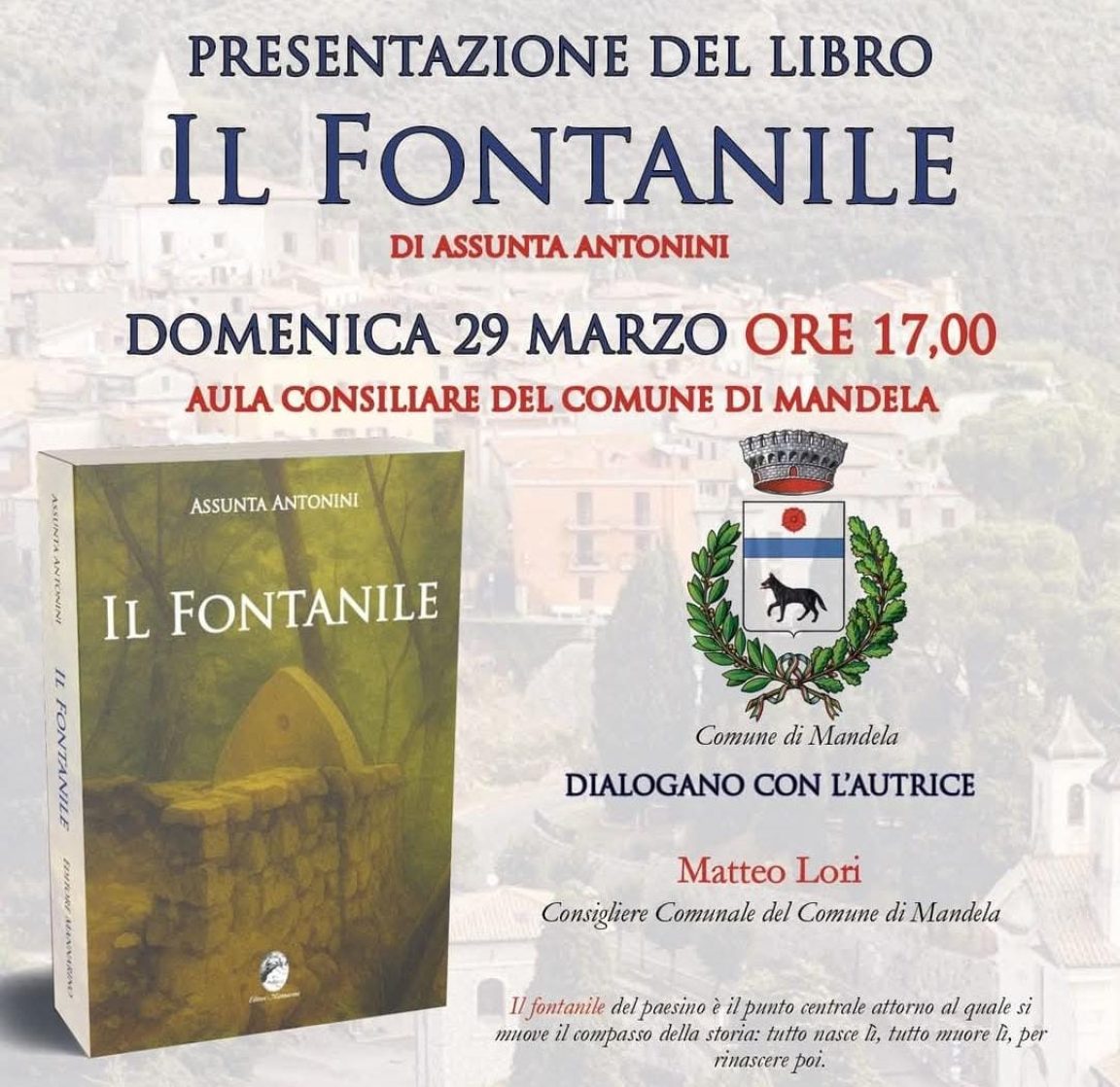 Domenica 29 marzo – ore 17:00 Assunta Antonina presenterà il suo libro “Il Fontanile”