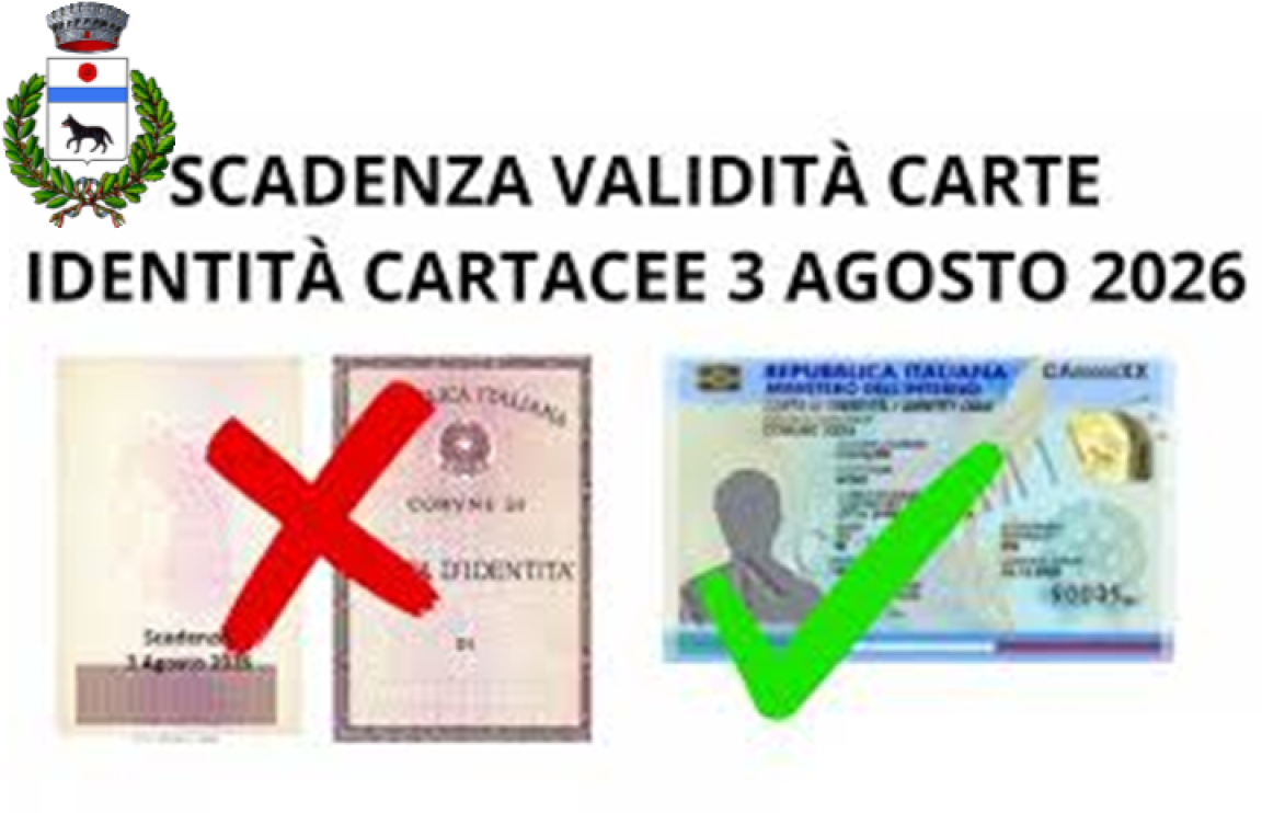 L’Amministrazione comunale informa che tutte le Carte d’Identità cartacee cesseranno di essere valide il 3 agosto 2026, indipendentemente dalla data di scadenza riportata sul documento.