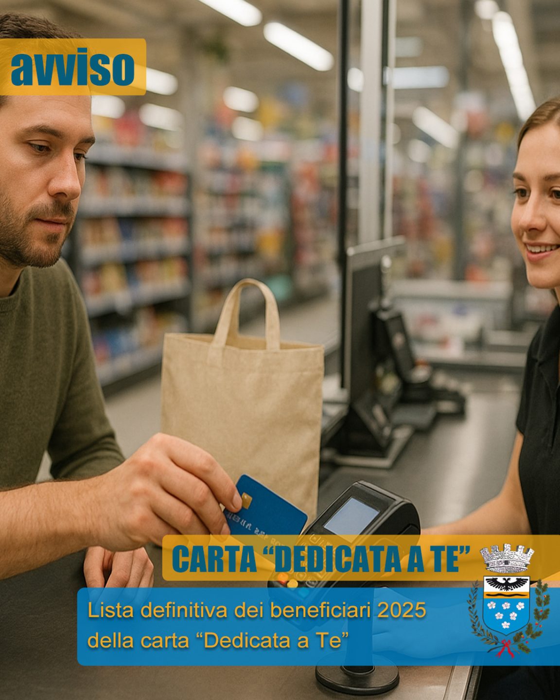A ricevere la card “Dedicata a te” sono famiglie con iscrizione di tutti i membri in Anagrafe ANPR ed ISEE fino a 15.000 euro (come riportato in DSU 2025), con priorità in graduatoria a quelli con componenti di minore età.