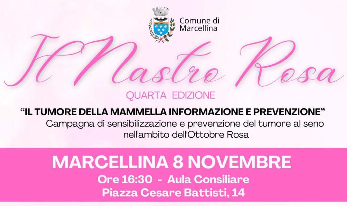 Si comunica che il giorno 8 novembre 2025 alle ore 16:30 presso l’Aula Consiliare del Comune di Marcellina, si terrà un incontro per la Campagna di sensibilizzazione e prevenzione del tumore al seno nell’ambito dell’Ottobre Rosa, “Il Nastro Rosa ” quarta edizione – Il tumore alla mammella informazione e prevenzione.