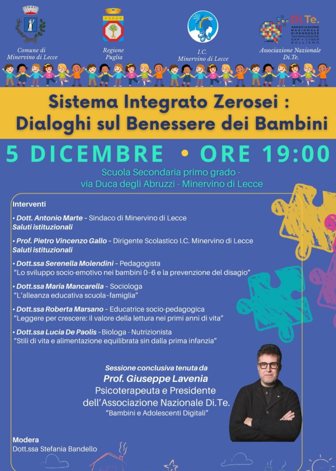 L’Amministrazione Comunale di Minervino di Lecce, in collaborazione con l’Istituto Comprensivo organizza un incontro dedicato alla fascia 0–6 anni.