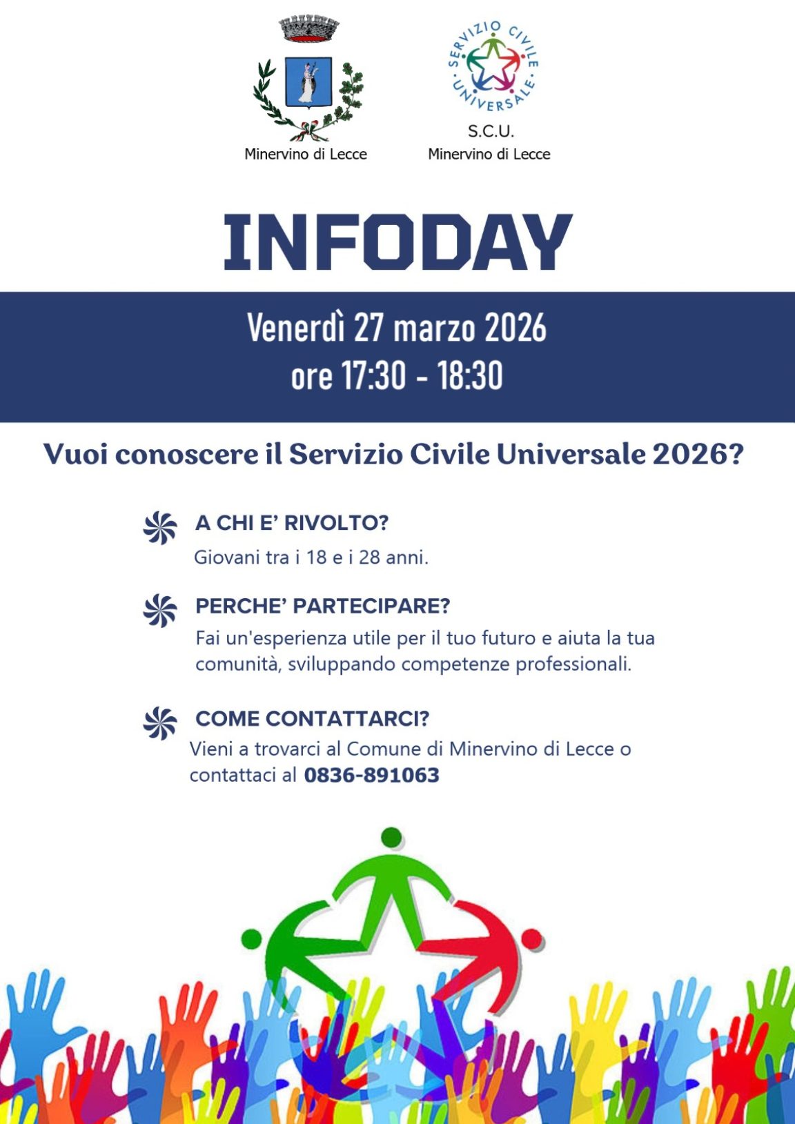 InfoDay – Servizio Civile Universale 2026 26 Marzo 2026 venerdì 27 marzo 2026 ore 17:30 – 18:30 Descrizione