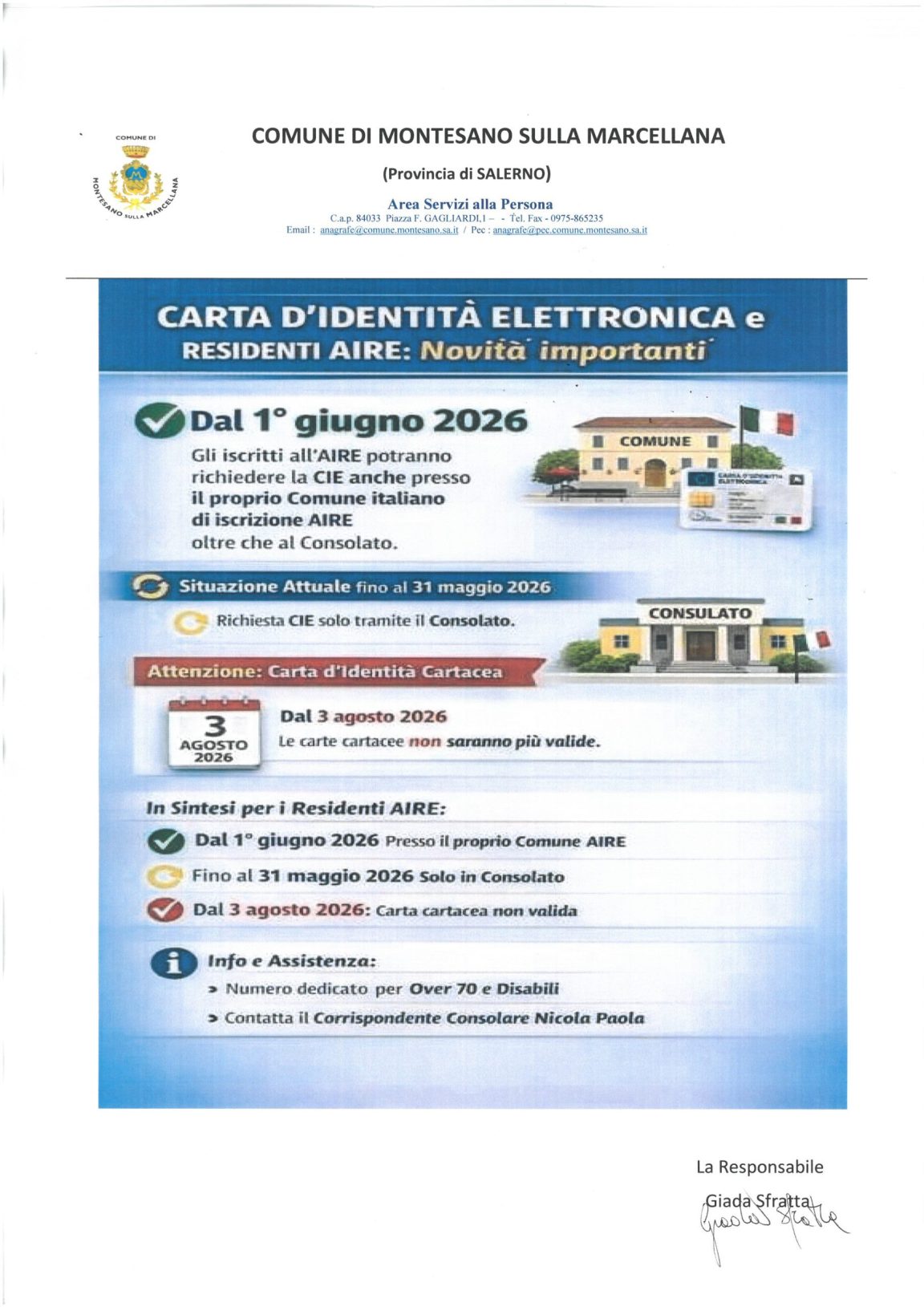 Informazioni riguardanti il rilascio di Carta Identità Elettronica per residenti AIRE