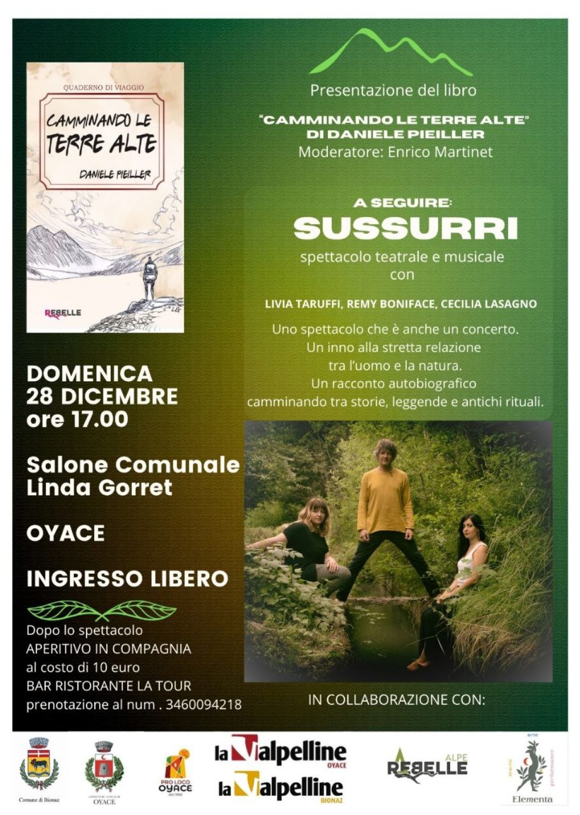 Presentazione libro – Spettacolo teatrale e musicale 27 Novembre 2025 Domenica 28 dicembre 2025 ore 17:00 – Salone comunale Linda Gorret Descrizione