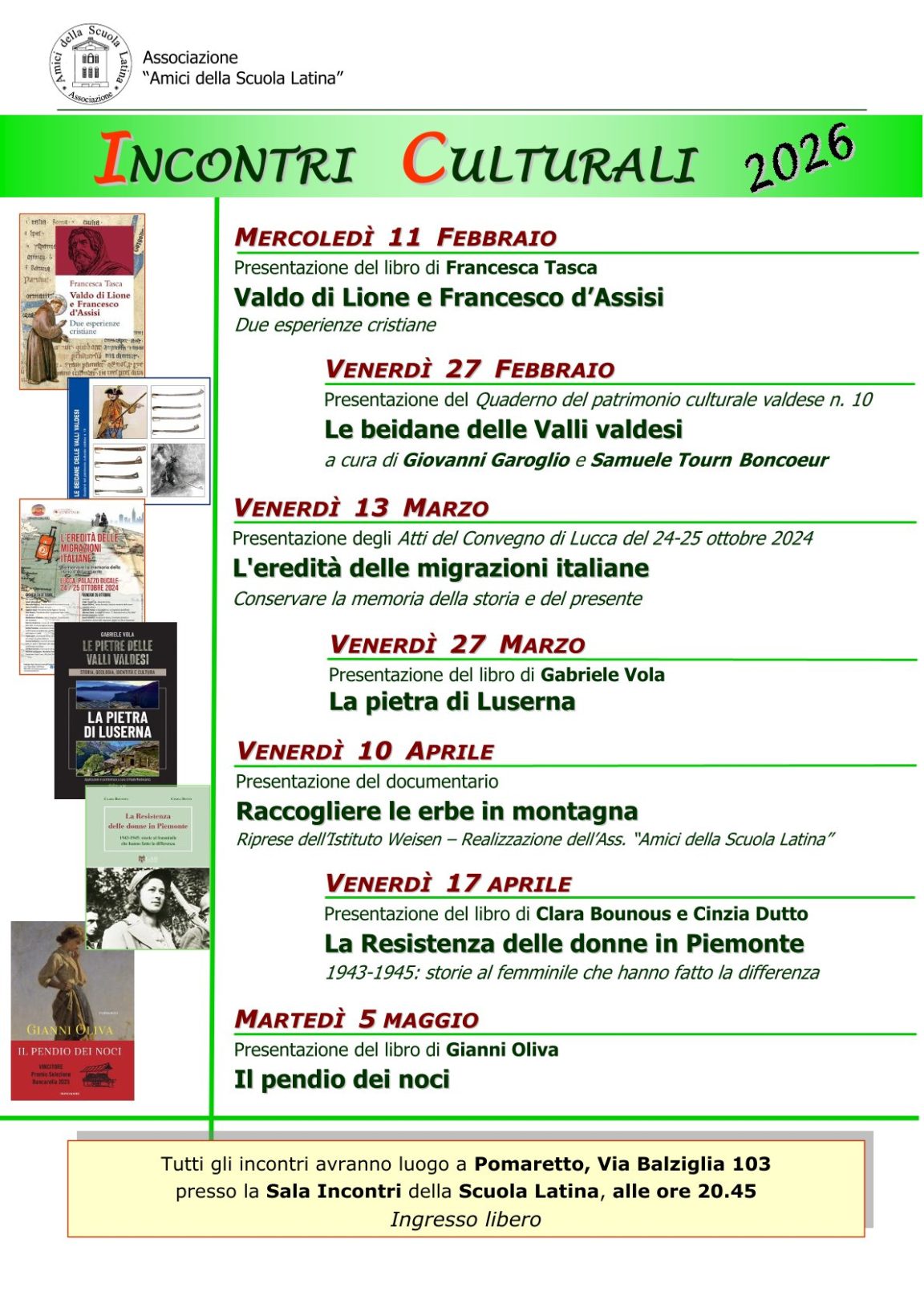 Iniziano gli Incontri Culturali 2026 alla Scuola Latina di Pomaretto.