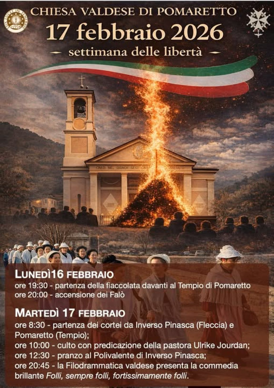 Vi aspettiamo a Pomaretto riuniti al Falò del 16 febbraio e agli appuntamenti del 17 febbraio.
