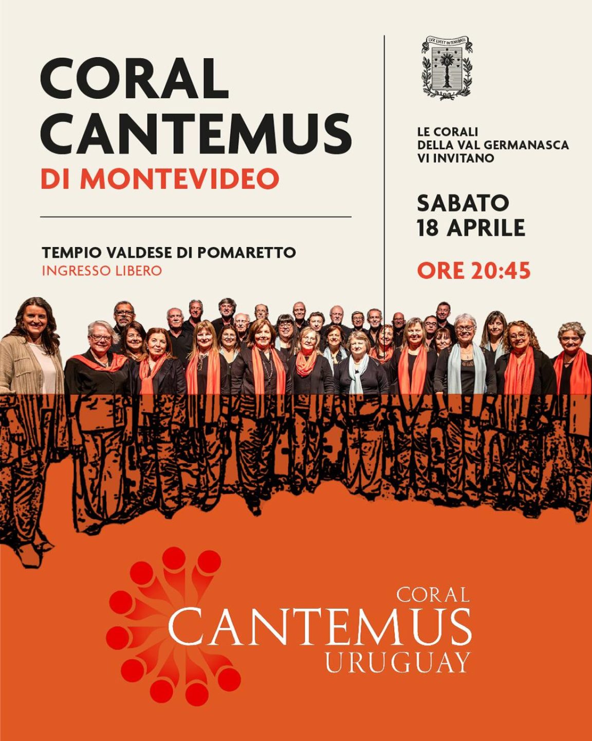 Le corali della val Germanasca invitano sabato 18 aprile al concerto della “Coral Cantemus” di Montevideo (Uruguay) alle ore 20.45 presso il tempio valdese di Pomaretto.