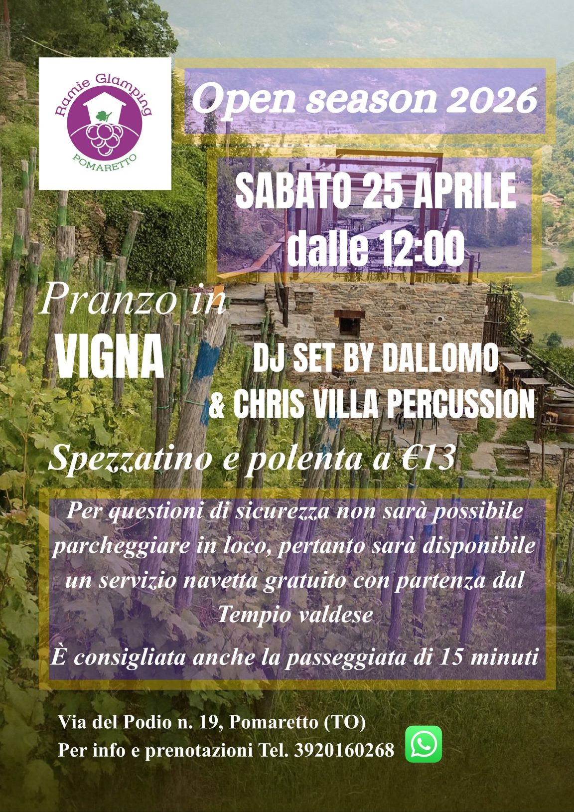 Un pranzo tra le vigne del Ramìe sabato 25 aprile dalle 12:00 con DJ SET BY DALLOMO & CHRIS VILLA PERCUSSION