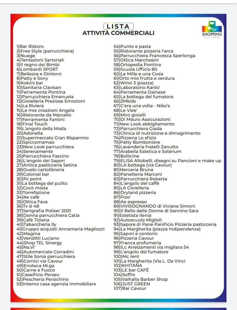 LISTA AGGIORNATA AL 30 NOVEMBRE 2020!! “SHOPPING PONTINIA “”