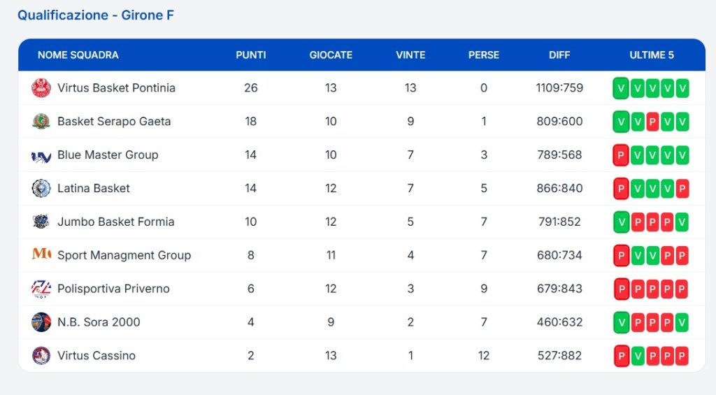 Virtus Pontinia – Virtus Cassino (75-35): Una netta vittoria casalinga che ha messo in mostra la profondità del roster e la solidità difensiva della squadra. Giovannoli (25 punti) e Gori (20 punti) si sono distinti per le loro prestazioni.